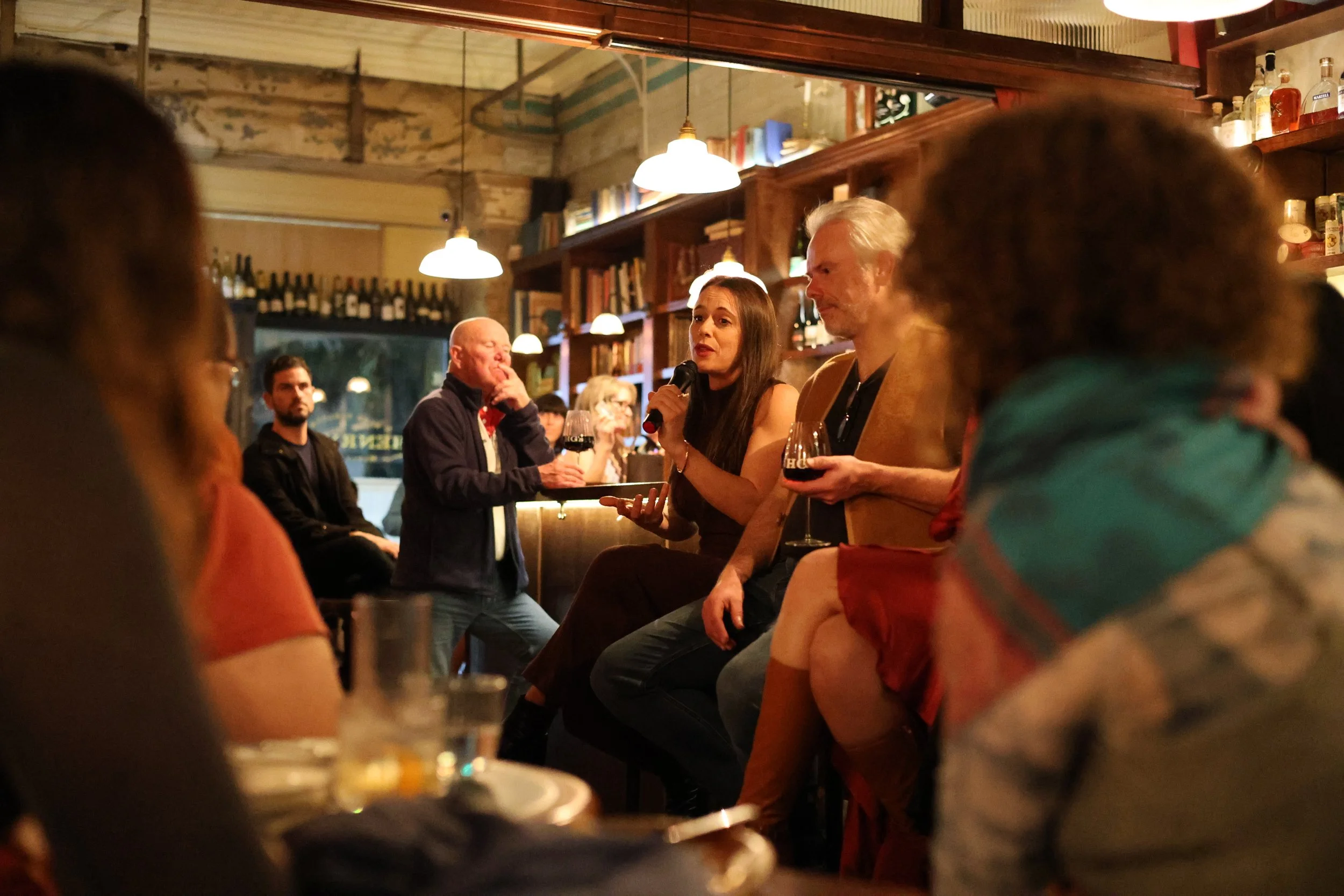 On Tuesday 5 August 2025, Manly42 launched its first Evening Talk, The Future of Human Connection, at Henry G’s Wine Parlour in central Manly. The sold-out event drew over 50 guests to an evening of warmth and lively discussion featuring philosopher April Lewis, psychotherapist Hannah Maude, women’s empowerment coach Tony Moran, and AI transformation consultant Rachel Smith.