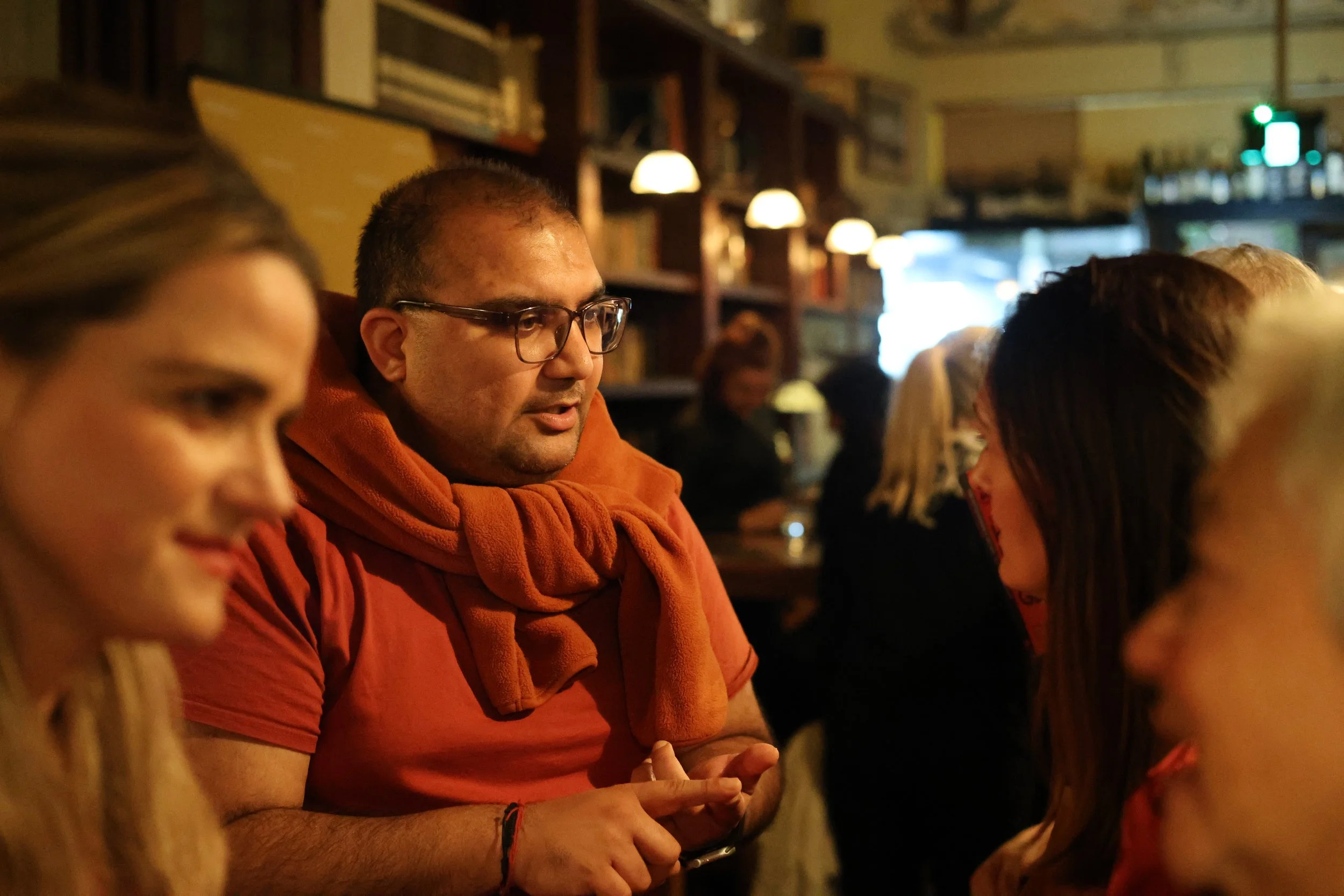 a calendar of in-person talks, stand-up comedy nights, elder’s storytelling, chess club, music performances, craft and chat afternoons, singles’ mixers, the Under the Moon philosophy group, board game nights (Catan, anyone?), women's circle, men's group, the “therapists taboo panel”, book club, hobby groups, movie nights…